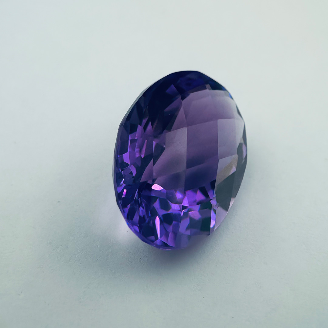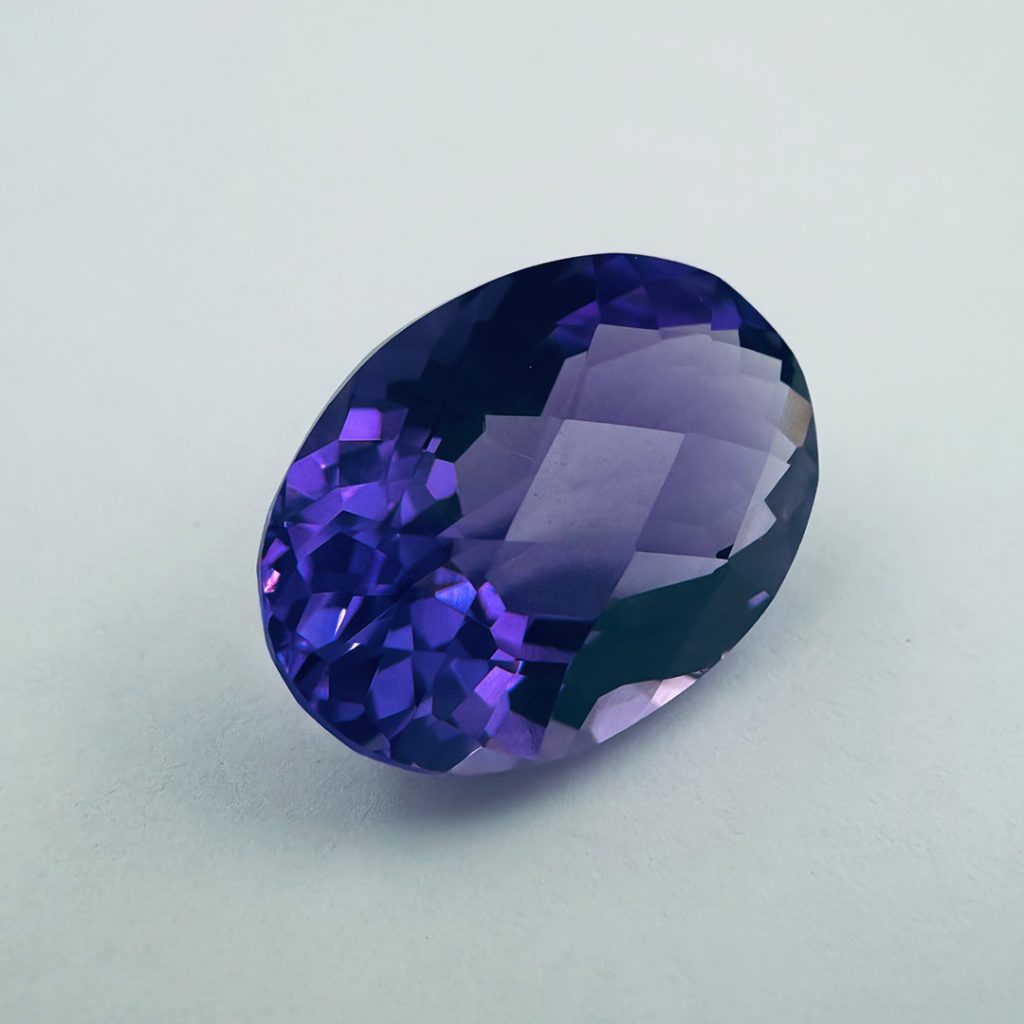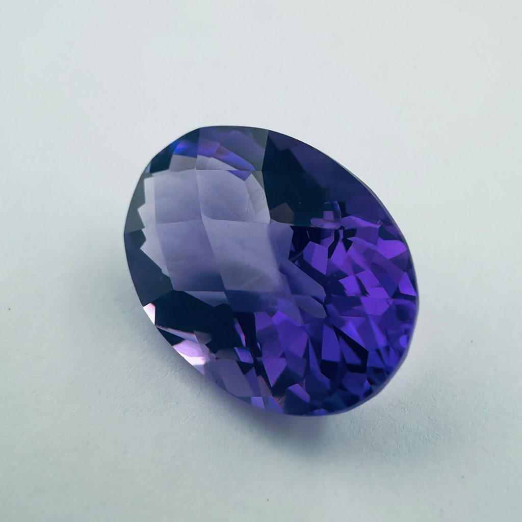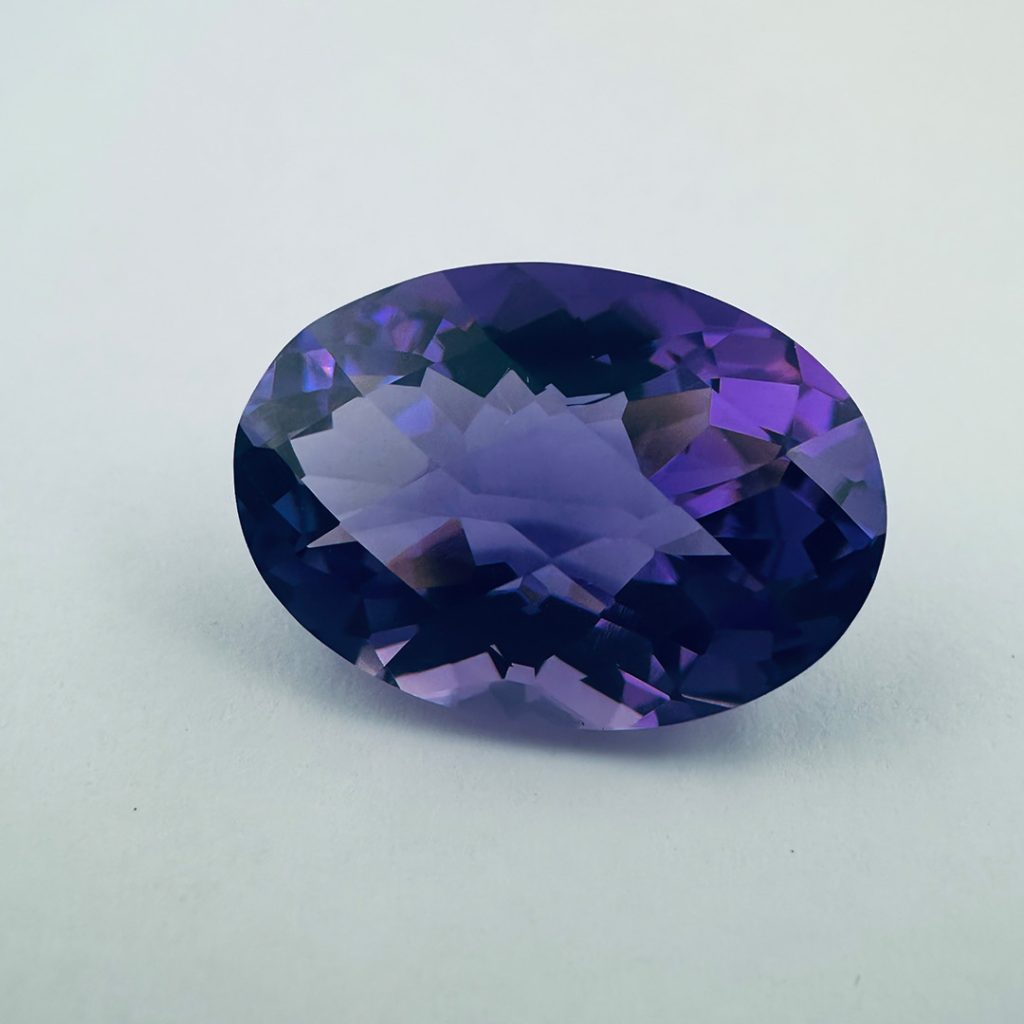 Discover the majestic beauty of Amethyst, a gemstone revered for its rich purple hue and captivating brilliance. Weighing an impressive 12.60 carats and measuring 19.4 by 13.6 by 9.2 millimeters, this stunning gem is cut into an elegant oval shape, allowing its deep violet color to radiate with regal charm.