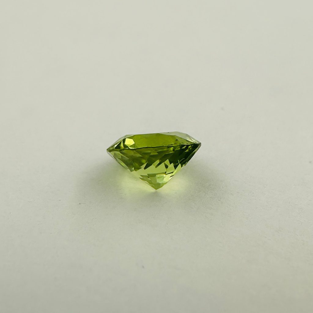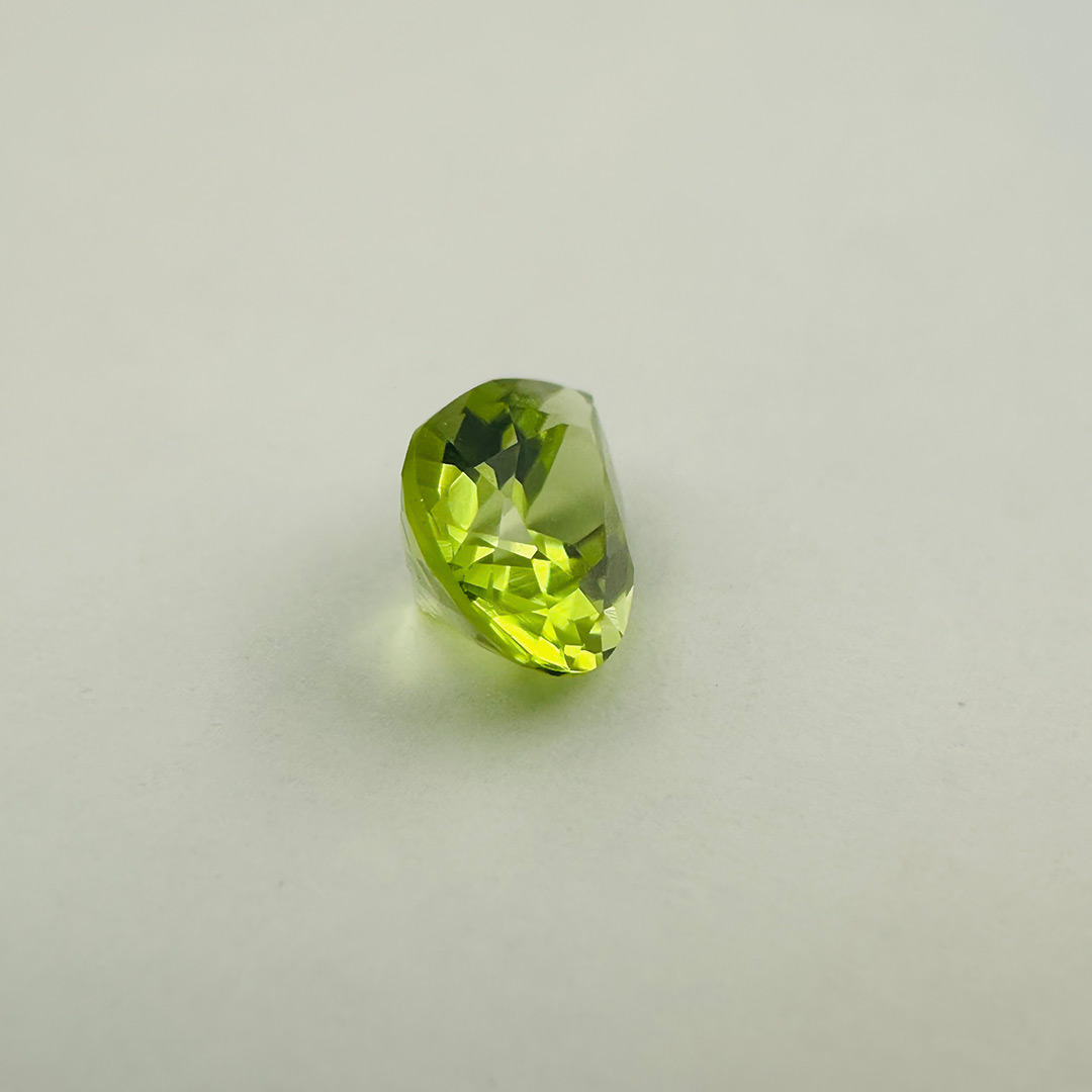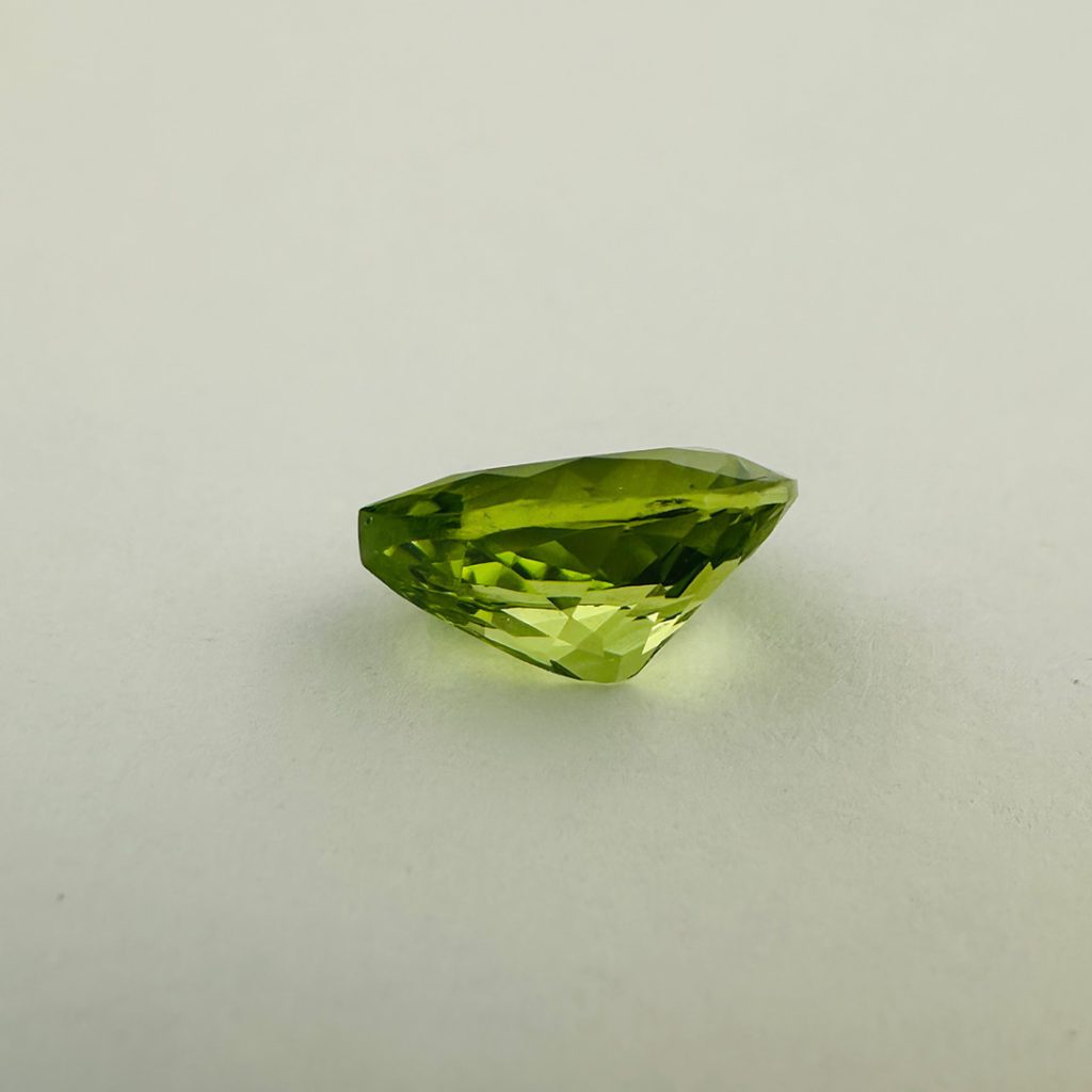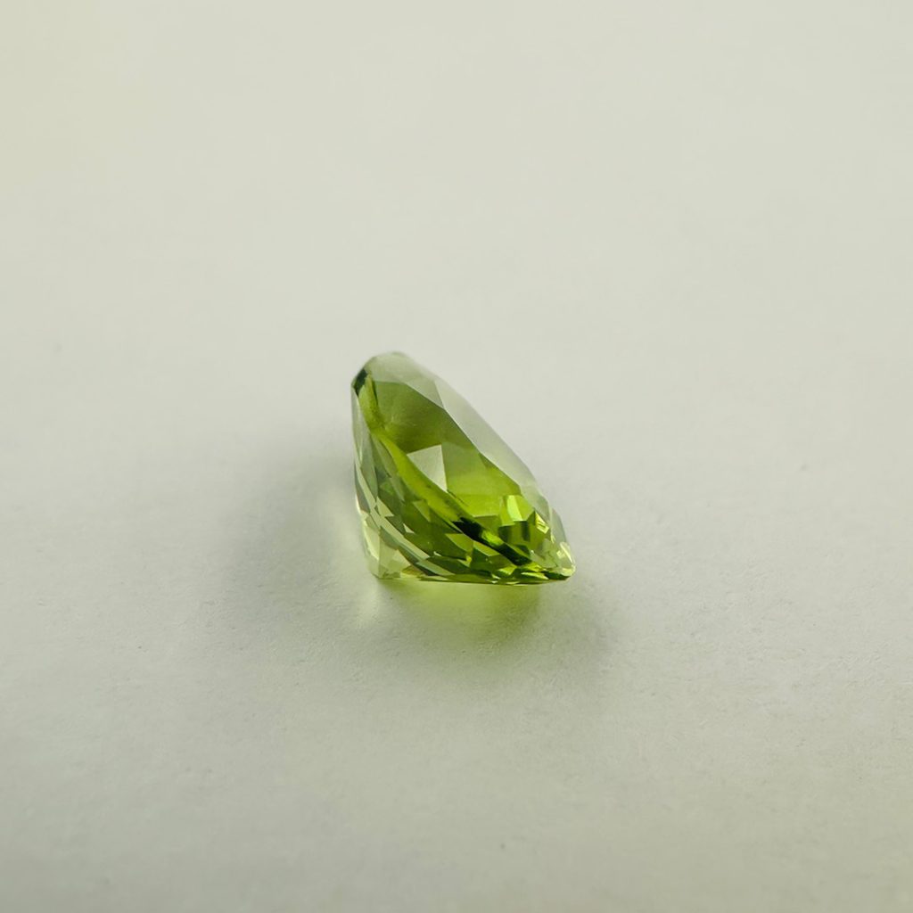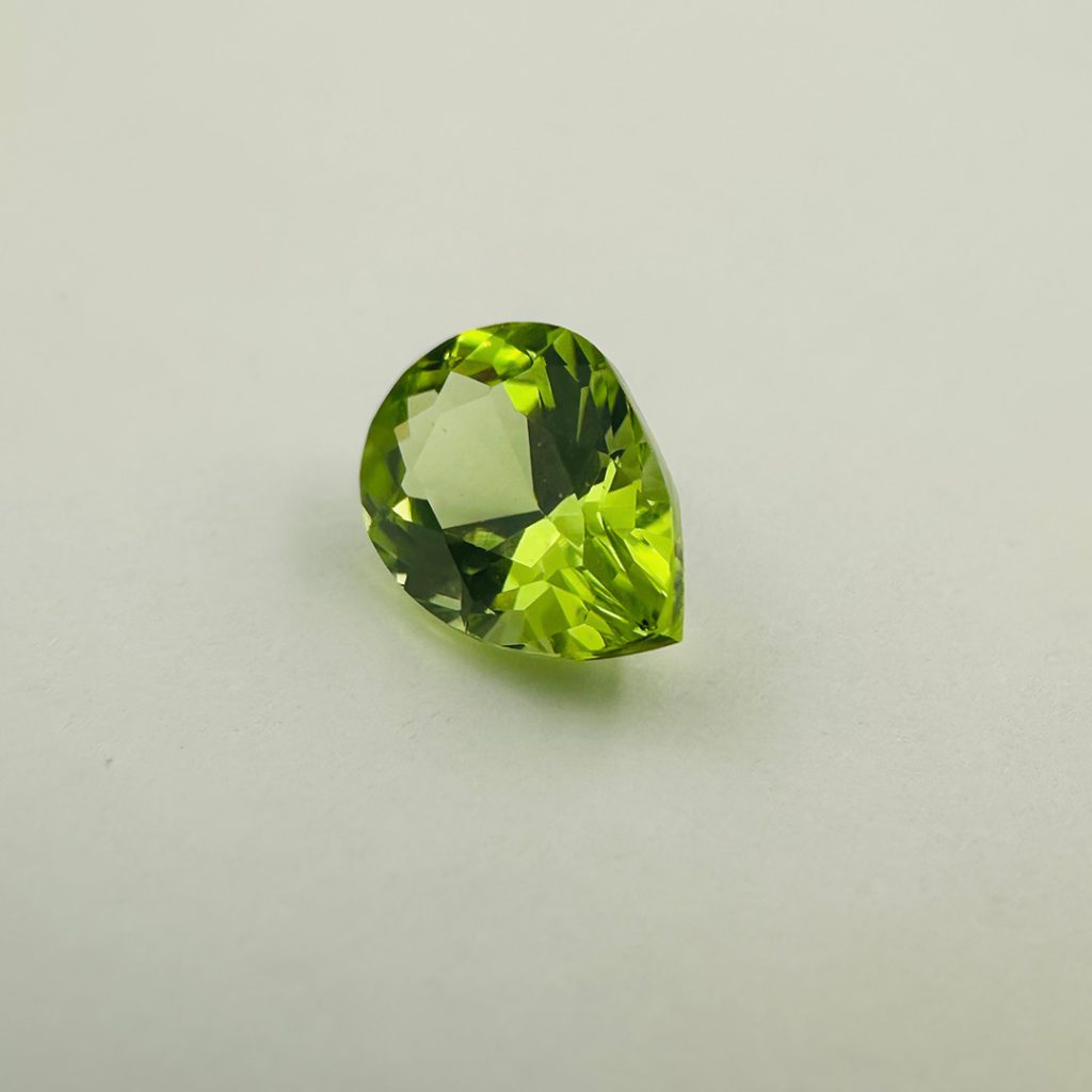 Discover the exquisite charm of Peridot, a gemstone celebrated for its lively green hue and vibrant sparkle. Weighing 1.56 carats and measuring 8.9 by 6.5 by 4.6 millimeters, this stunning gem is elegantly shaped into a pear cut, showcasing its beautiful color and enhancing its captivating light play.