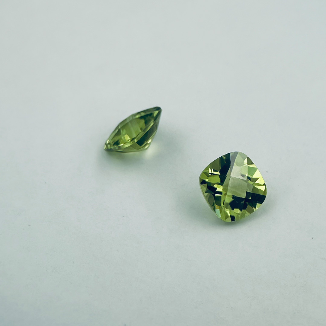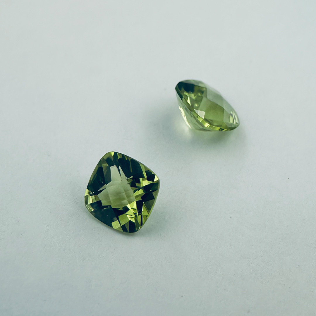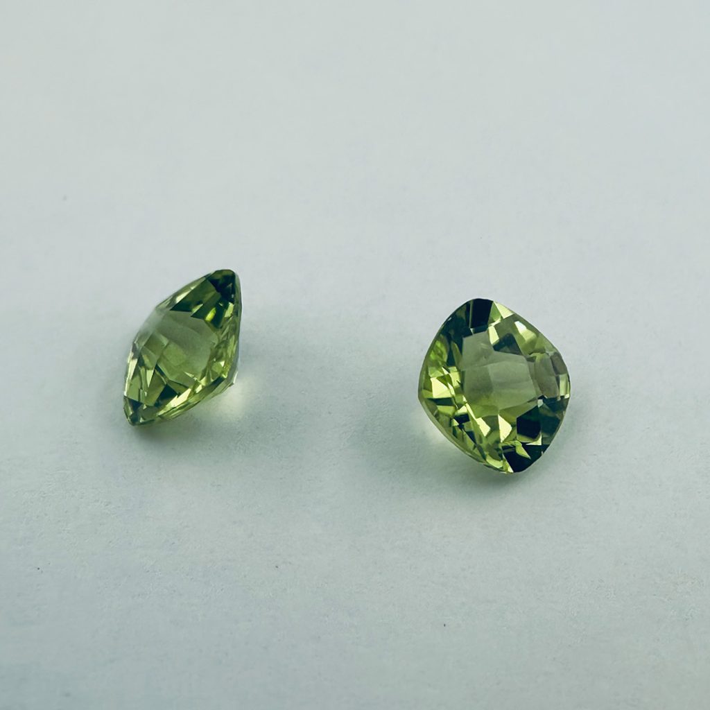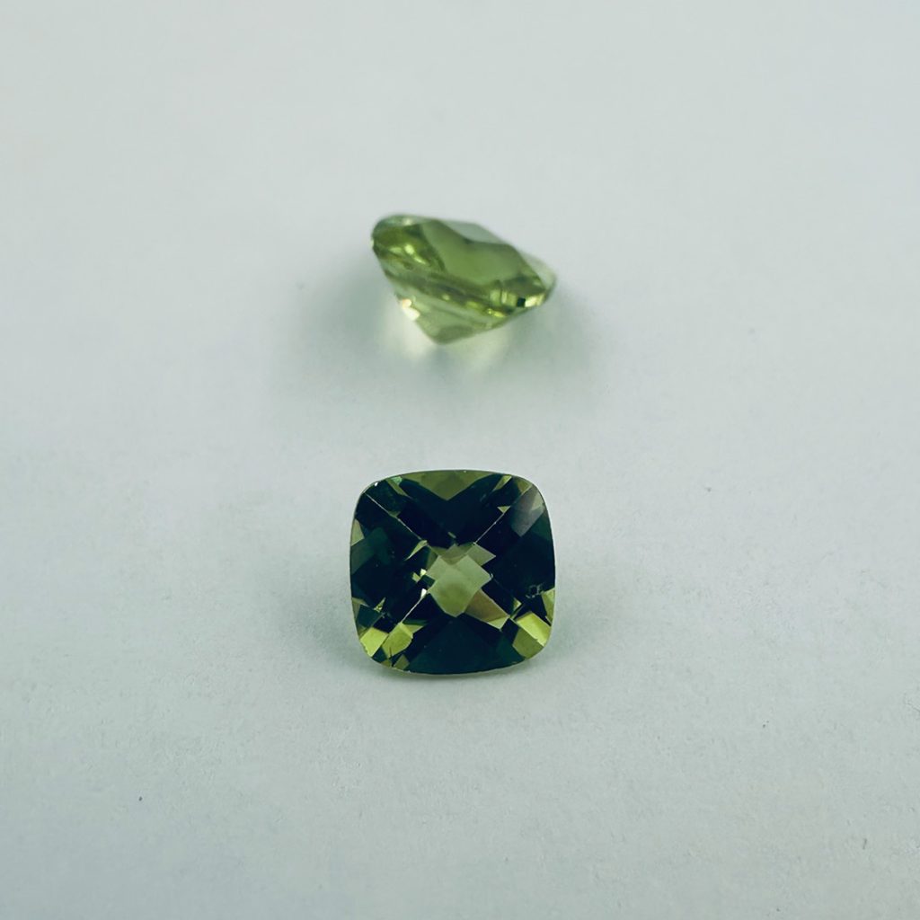 Experience the vibrant allure of Peridot, a gemstone renowned for its lively green color and sparkling brilliance. Weighing 2.04 carats and measuring 6.2 by 3.9 millimeters, this exquisite gem is beautifully cut into a cushion shape, enhancing its captivating light play and showcasing its rich hue.