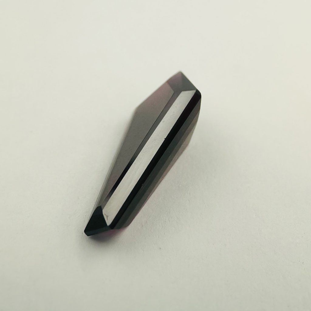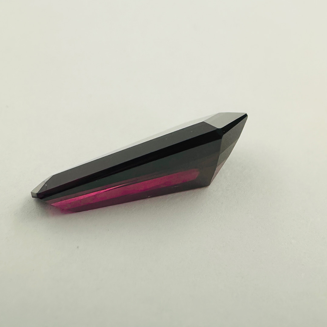 Discover the striking allure of Spinel, a gemstone known for its vibrant brilliance and exceptional durability. Weighing 3.82 carats and measuring 17.2 by 7.7 by 4.9 millimeters, this unique gem is expertly cut into a kite shape, enhancing its eye-catching appearance and allowing light to reflect beautifully across its facets.