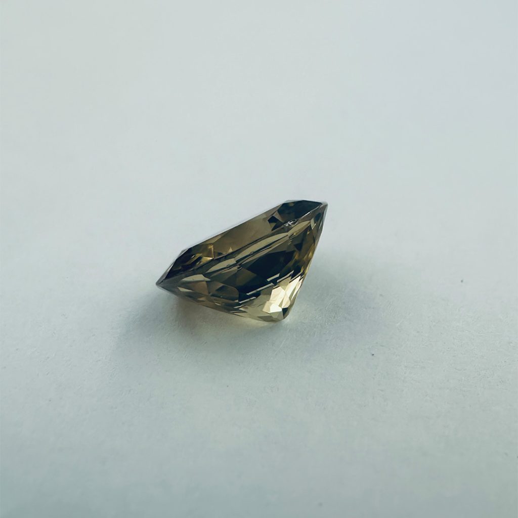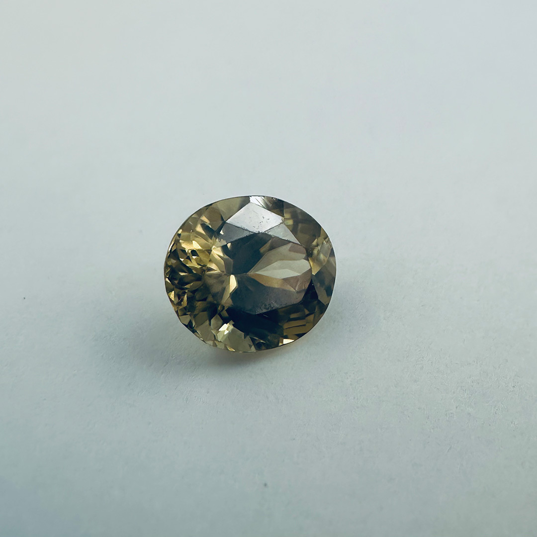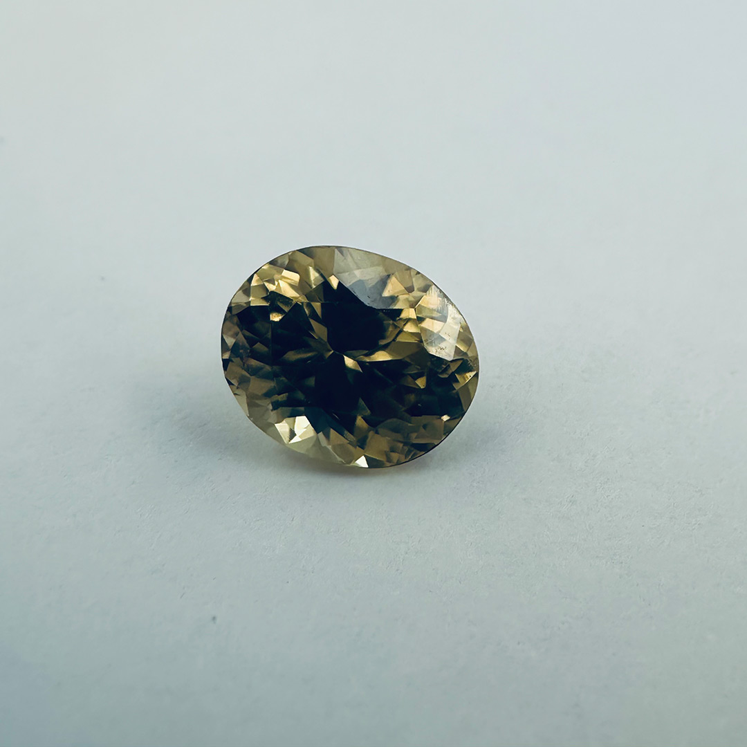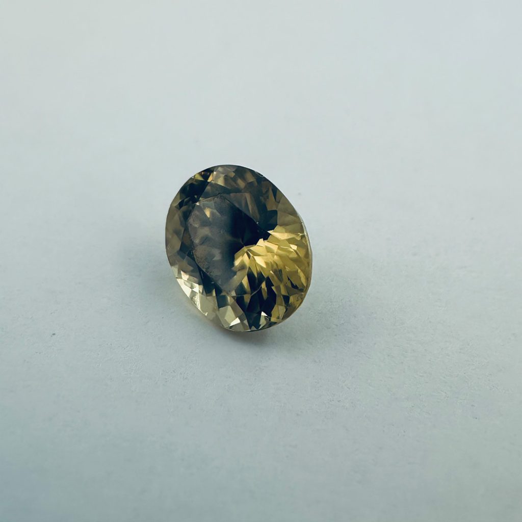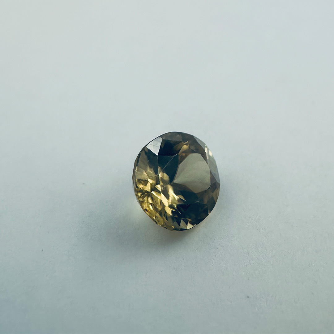 Experience the enchanting charm of Zircon, a gemstone revered for its captivating brilliance and vibrant hues. Weighing 2.55 carats and measuring 8.7 by 7.1 by 4.9 millimeters, this exquisite gem is elegantly cut into an oval shape, showcasing its radiant yellow color that glimmers with every turn.